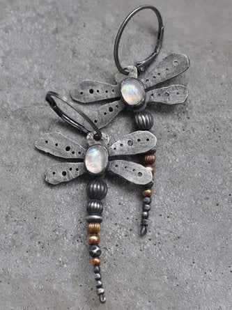 Vintage Silber Distressed Libelle Opal Mondstein Ohrringe Böhmischen Ethnischen Schmuck QAR88