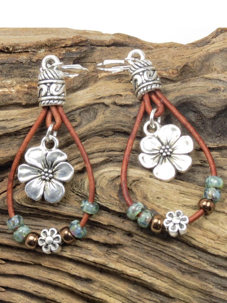 Ethno Vintage Blumenmuster Leder Ohrringe Western Boho Kleid Schmuck G144