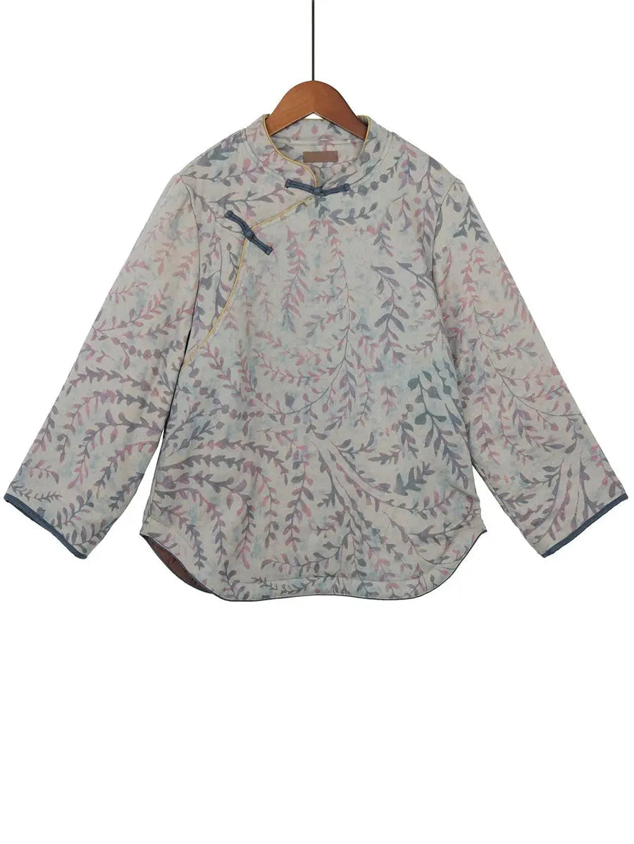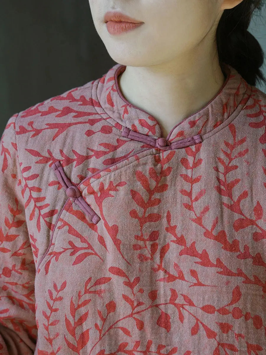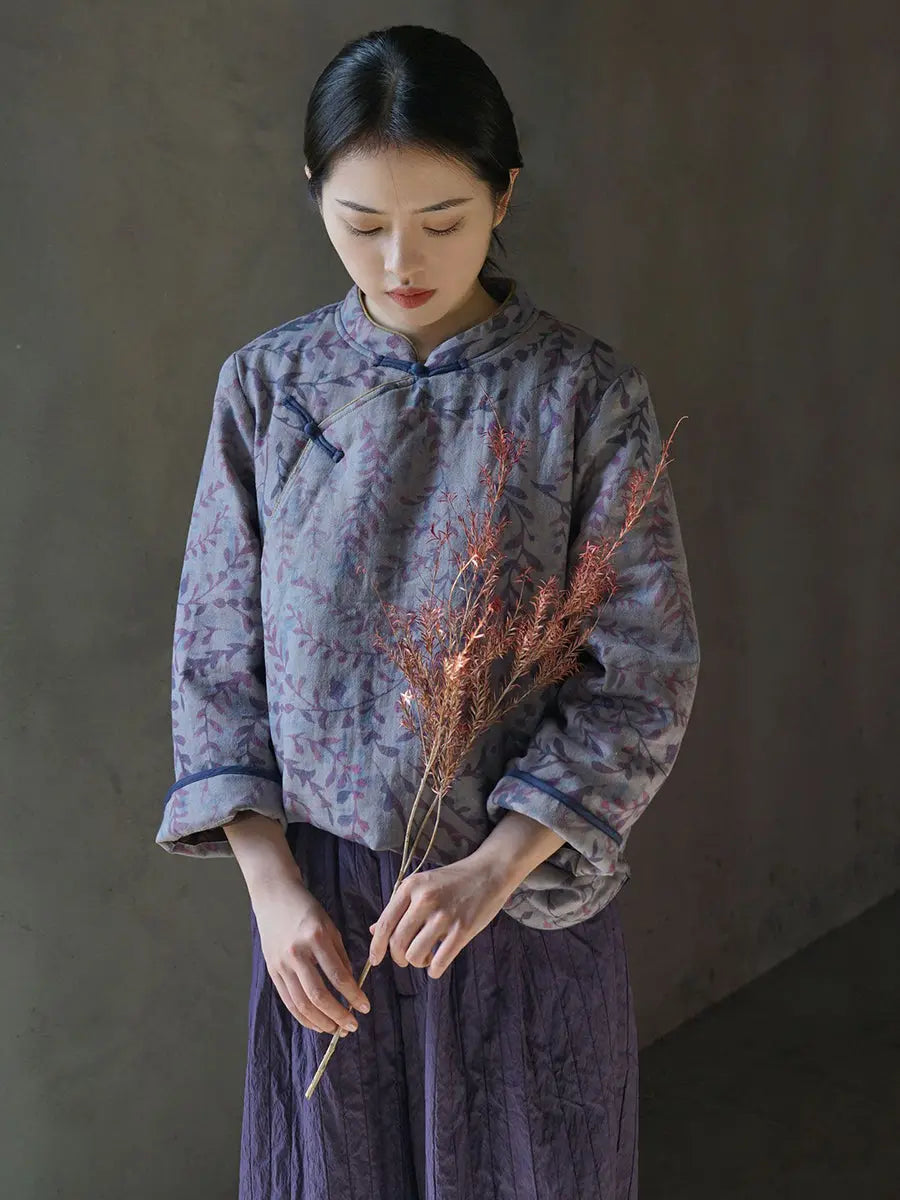 Dieser Mantel besteht aus Baumwolle und verfügt über ein Blättermuster, einen Stehkragen und lange Ärmel, was ihm eine Retro-Ästhetik verleiht. Perfekt für die Herbst- und Wintersaison.