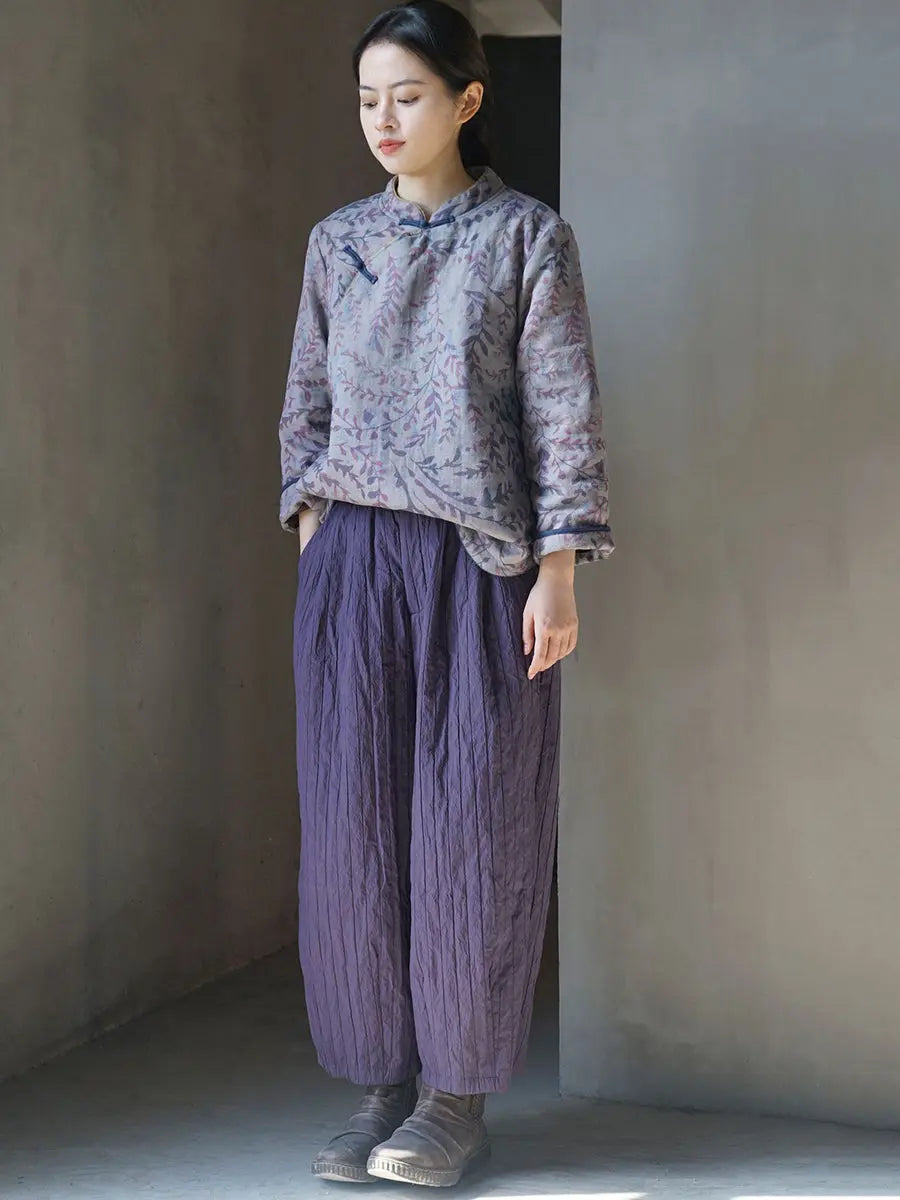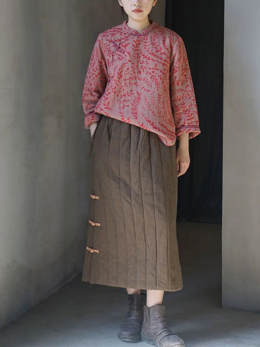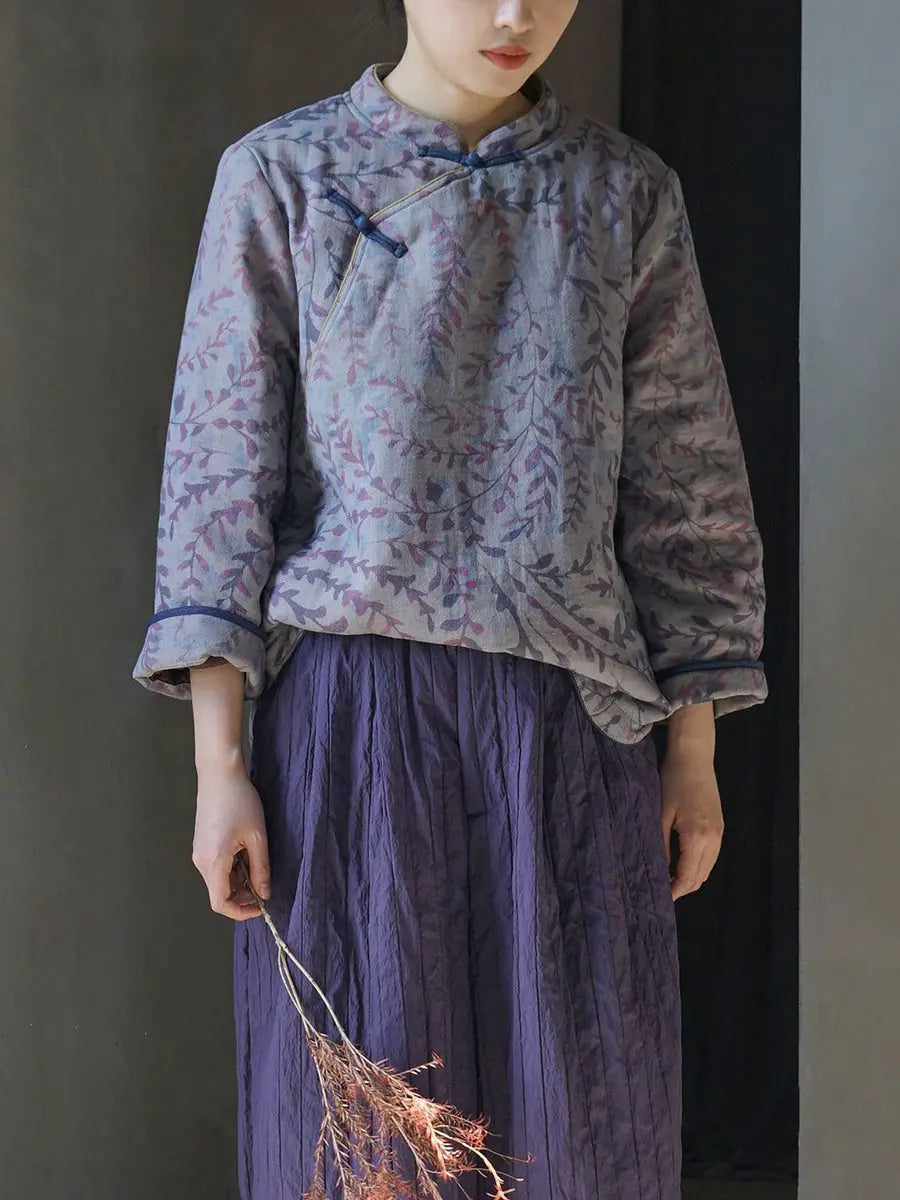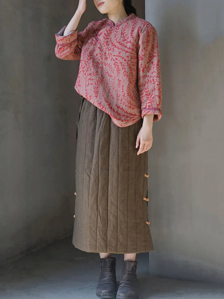 Dieser Mantel besteht aus Baumwolle und verfügt über ein Blättermuster, einen Stehkragen und lange Ärmel, was ihm eine Retro-Ästhetik verleiht. Perfekt für die Herbst- und Wintersaison.