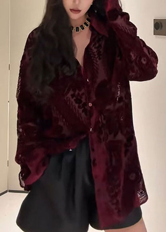 Fine Mulberry Peter Pan Collar Jacquard Silk Velour Shirts Fall WE021