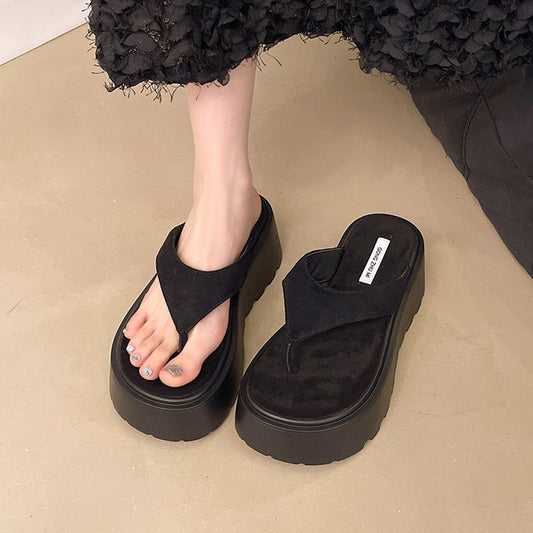 Flip Black Flops Leather Wedge Cowhide Handmade