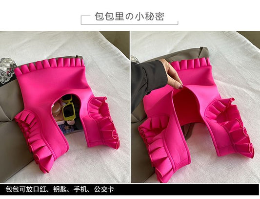 Embroideried Stylish Tulle Ruffled Red Tote Handbag