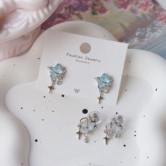 Rhinestone Heart / Star Drop Clip On Earring
