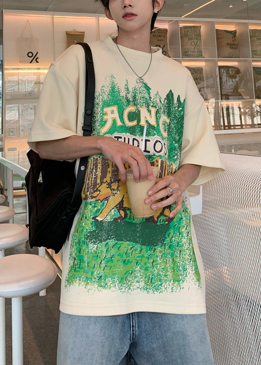 New Original Cotton Apricot Design Shirts Print Men Half Sleeve T