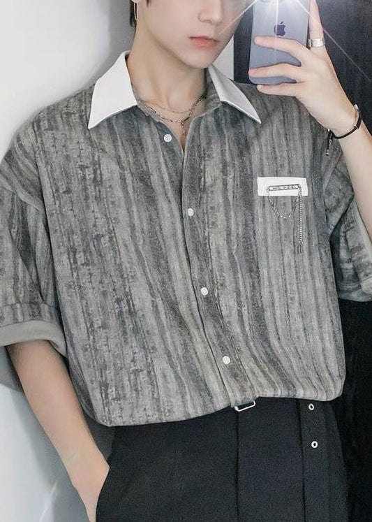 Shirts Collar Design Peter Pan Button Grey Mens Original Cotton