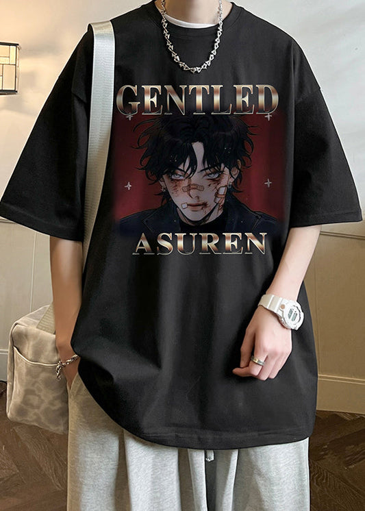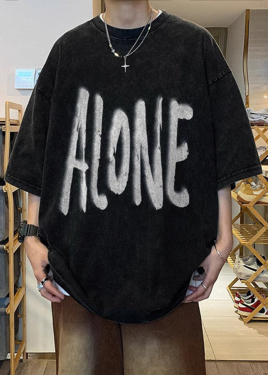 Black Print Letter Mens O Neck Loose Cotton T Shirts Summer