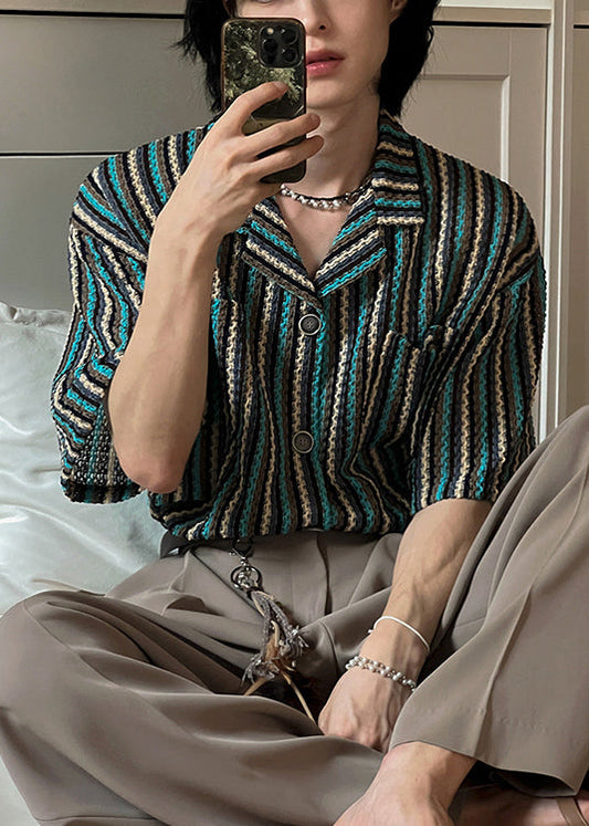 Men Button Striped Stylish Cotton Patchwork Green Shirts Light