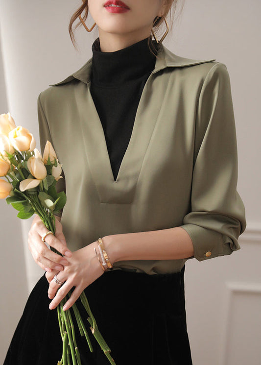 French Avocado Green Bow Lace Up Patchwork Cozy Top Long Sleeve TU009