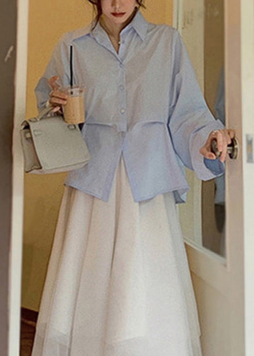 French White Peter Pan Collar Patchwork False Two Pieces Cotton Tops Fall TU004