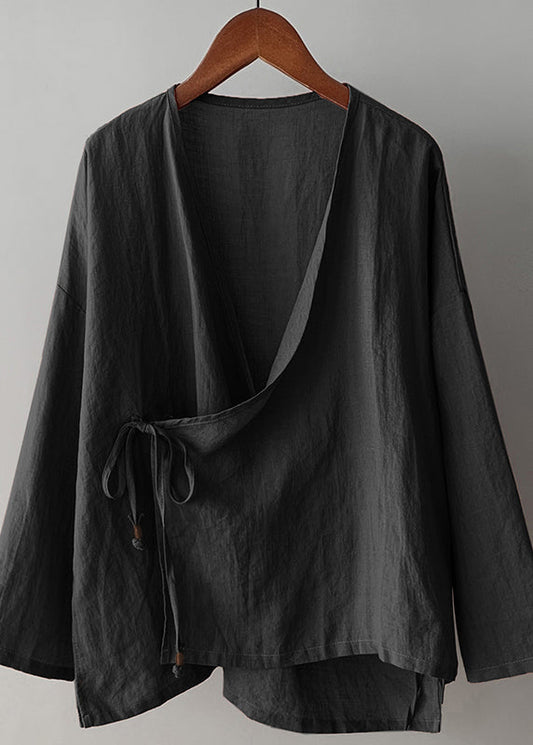 Vintage Rose V Neck Lace Up Cotton Top Spring TI033