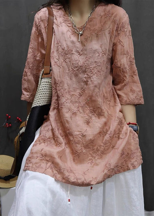 Vintage Rose V Neck Embroidered Side Open Top Spring RX001
