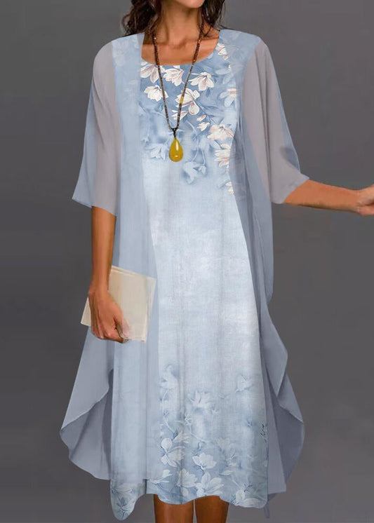O-Neck New Two Pieces Pink Print Chiffon Set Sleeve Half