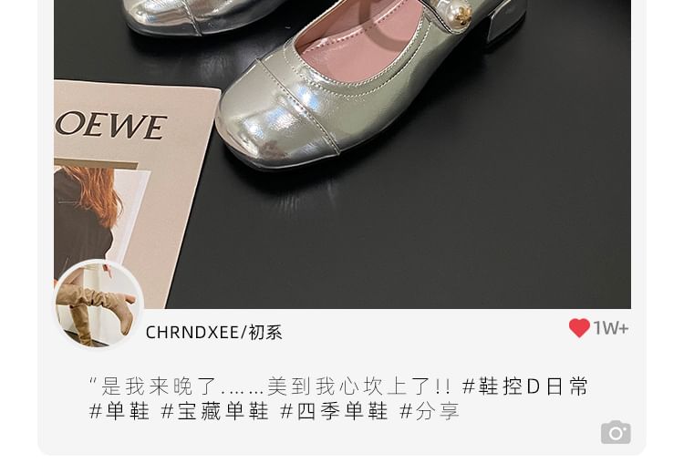 Chunky Heel Plain Faux Pearl Accent Mary Jane Pumps