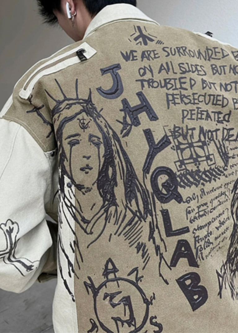 Coats DIY Fall Patchwork Men Apricot Mens Cotton Print