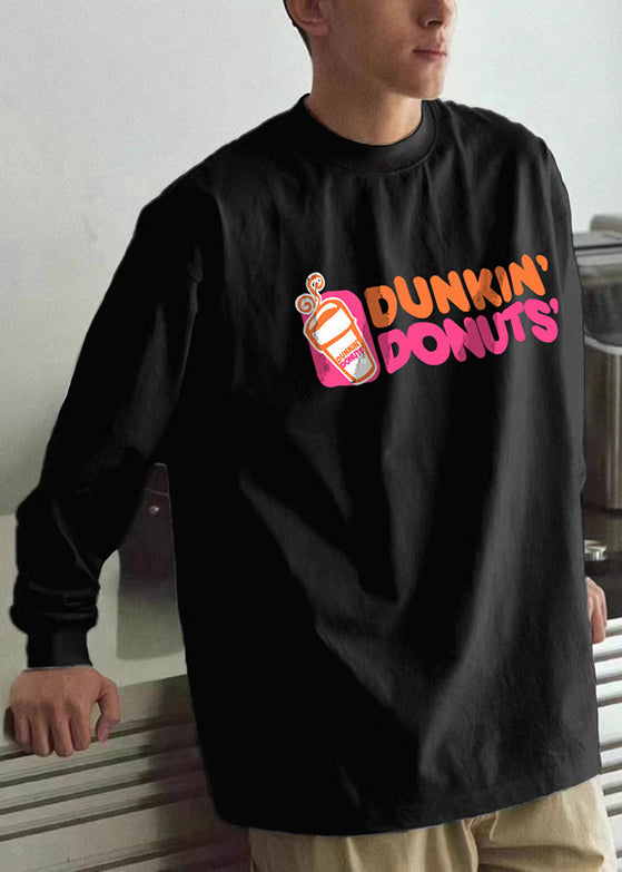 Casual Black O Neck Print Cotton Men T Shirts Spring
