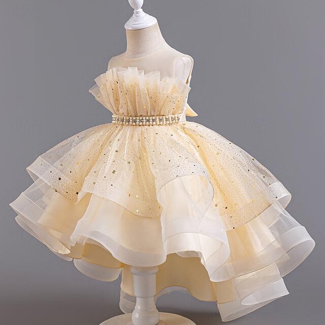Gender: Girls', Age Group: Kids, Style: Adorable, Sweet, Occasion: Special Occasion, Party, Wedding, Kids Apparel: Party Dress, Flower Girl Dress, Fabric: Polyester, Cotton, Pattern: Sequin, Sleeve Length: Sleeveless, Design: Sequins, Mesh, Age: 4-13 Years, Season: Summer, Winter, Fall, Spring, Look After Me: Machine wash, Elasticity: Inelastic, Fit Type: Form Fit, Dresses Type: Party Dress, Dress Length (cm): Asymmetrical, Neckline: Crew Neck,