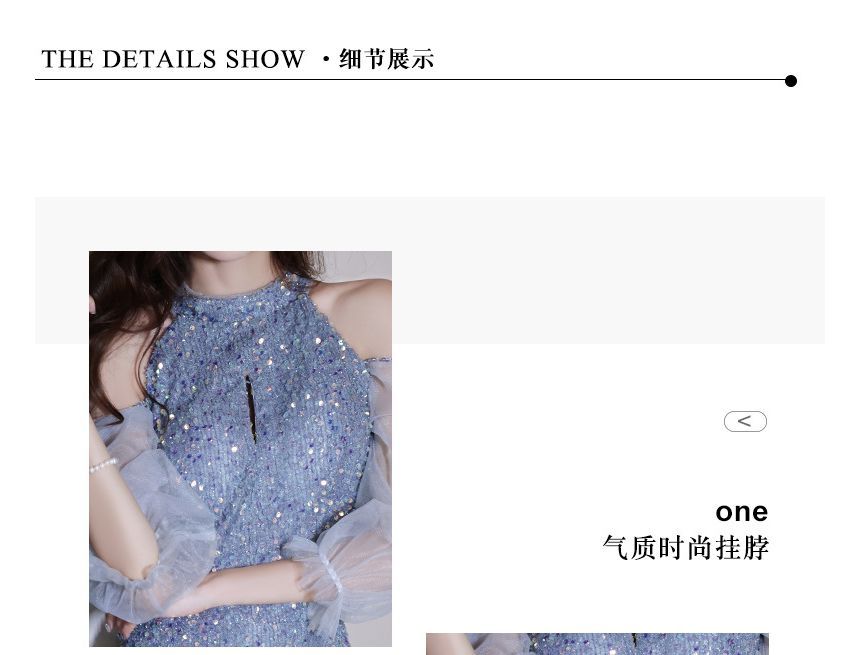 Evening Sequin Sheath Gown Cold-Shoulder