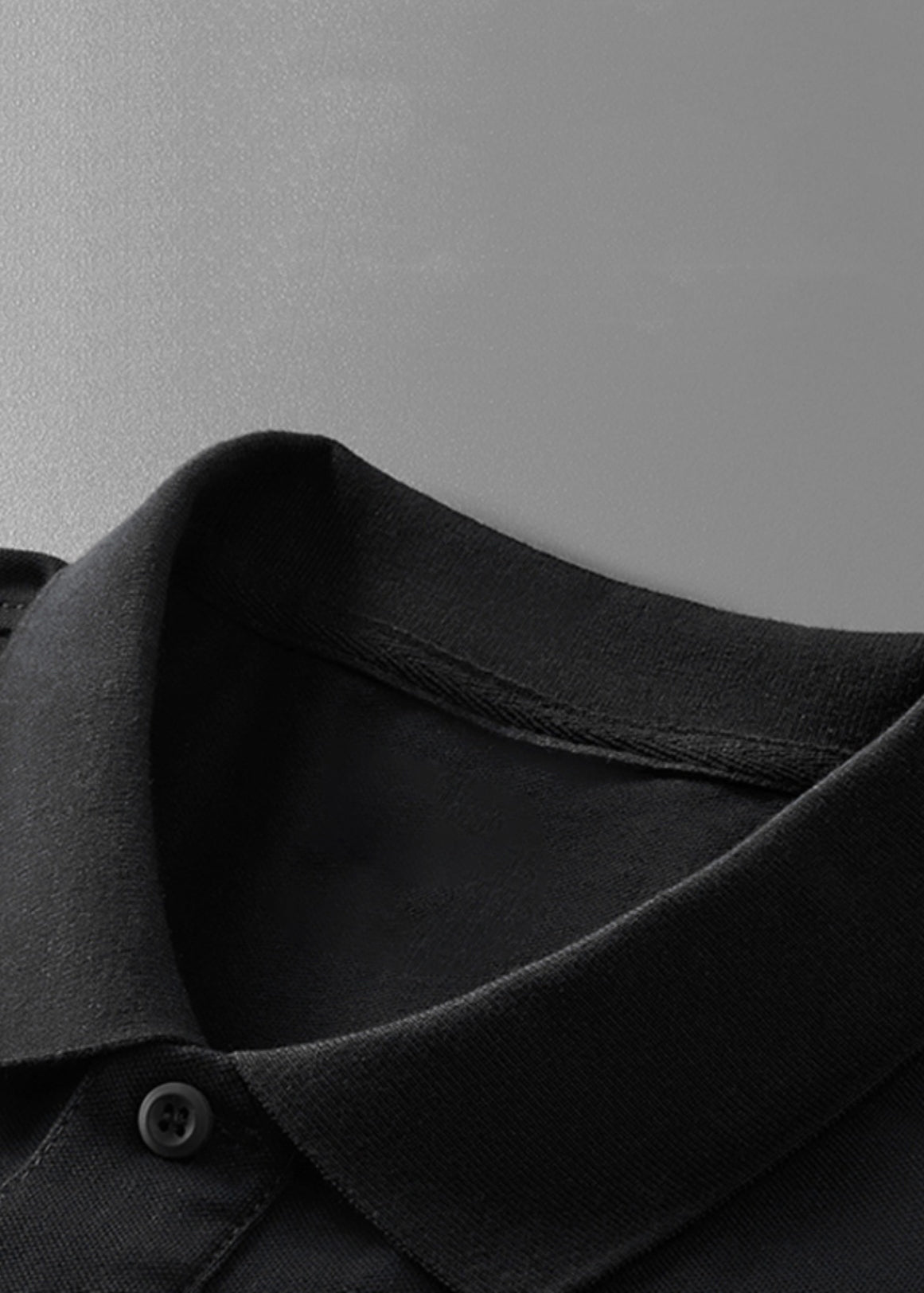 Black Print Button Slim Fit Cotton Polo Shirt Men Summer