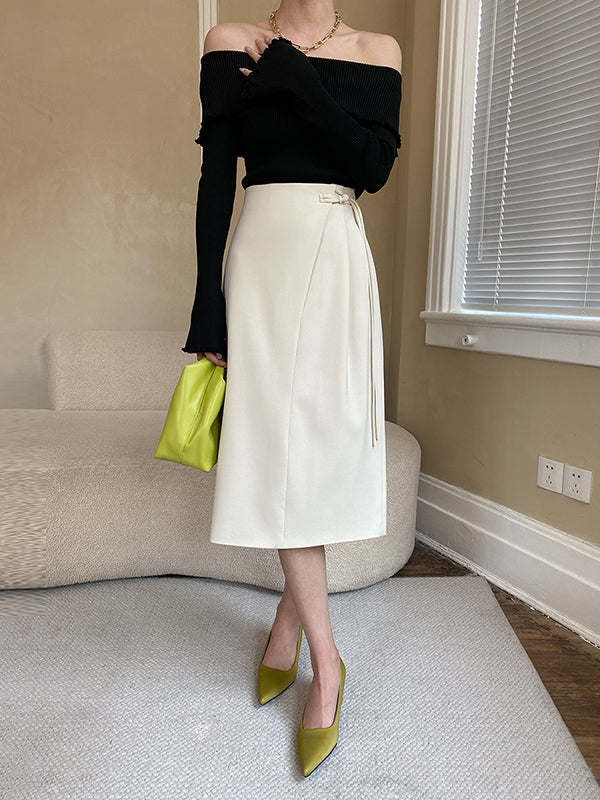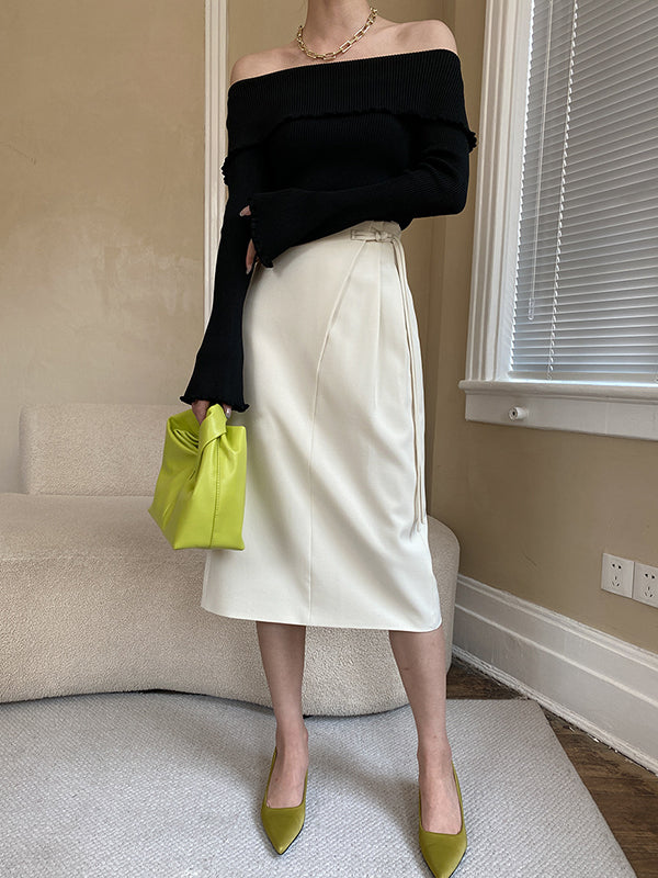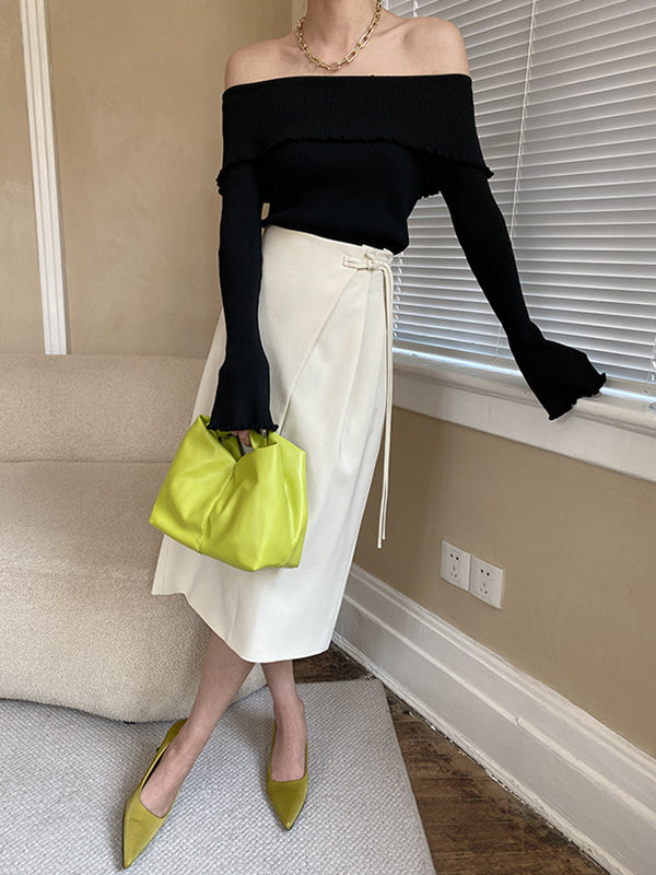 French Black Off-shoulder Long Sleeve Knit Top AN1069