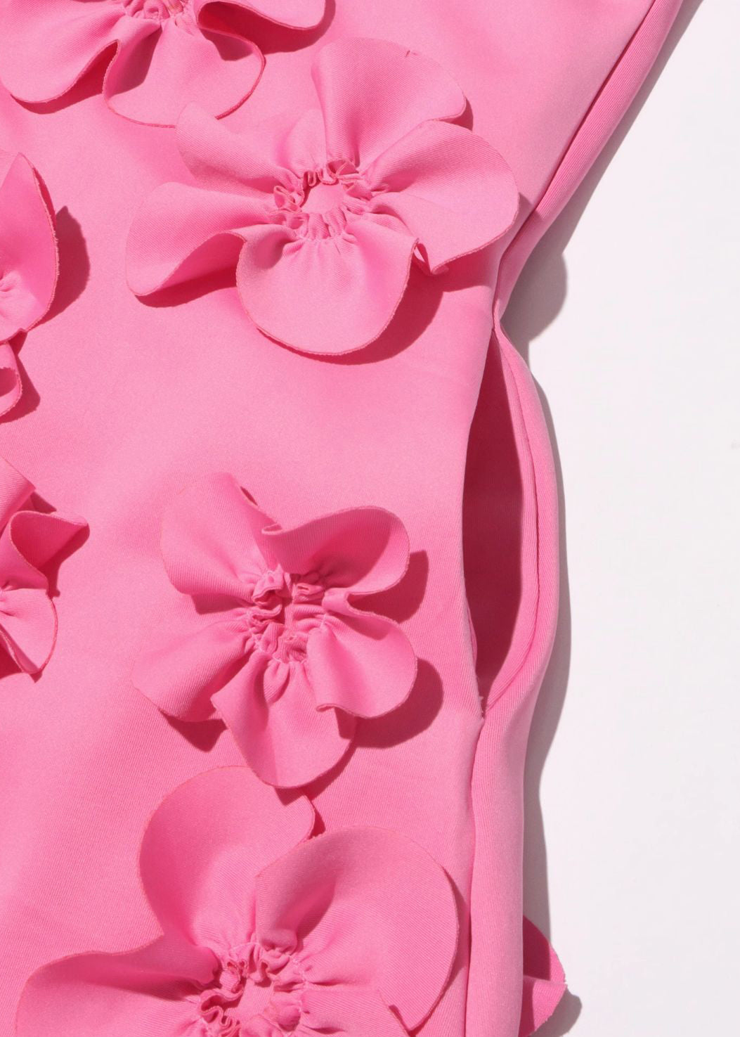 Elegant Pink Floral Lace Up Pockets Cotton Long Dress Sleeveless