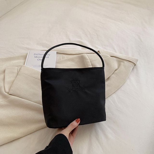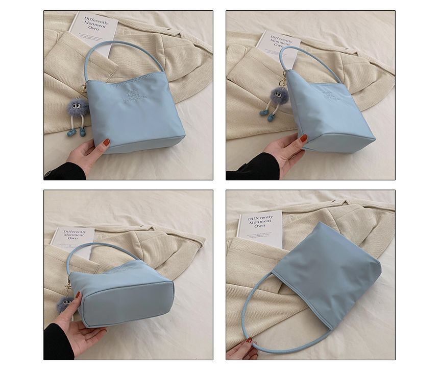 Letter Embroidered Shoulder Bag / Bag Charm / Set