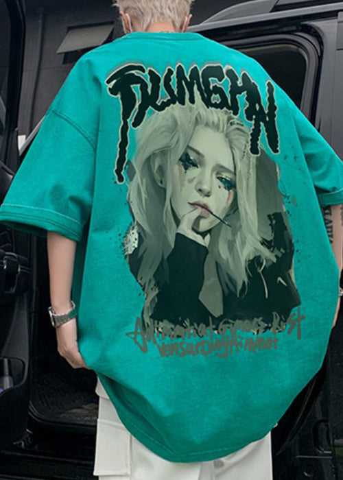 French Rose Belle Letter Oversized Cotton Mens T Shirts Summer