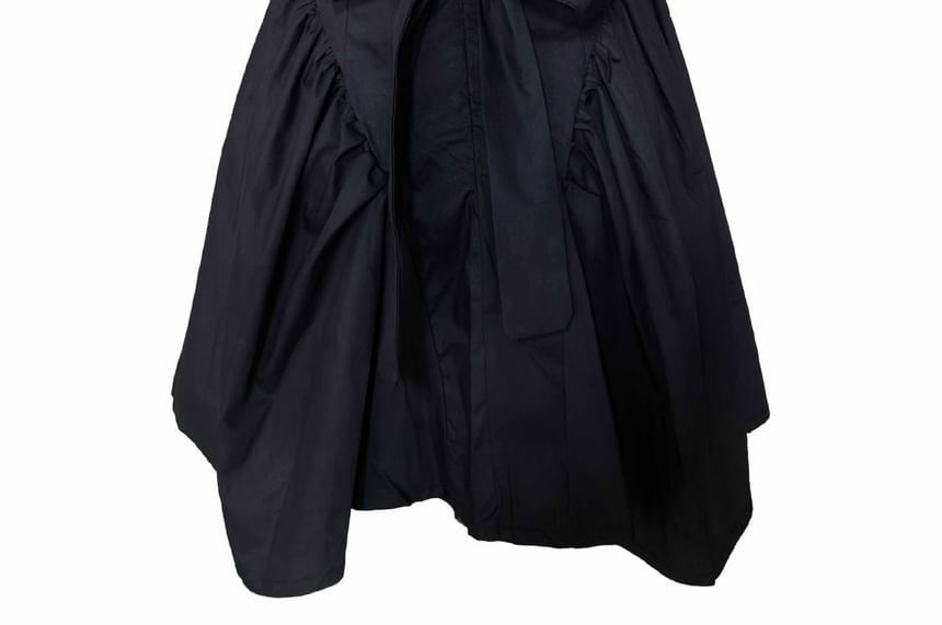 Open Dress Square Neck Back Plain A-Line Waist Tie Mini Sleeveless