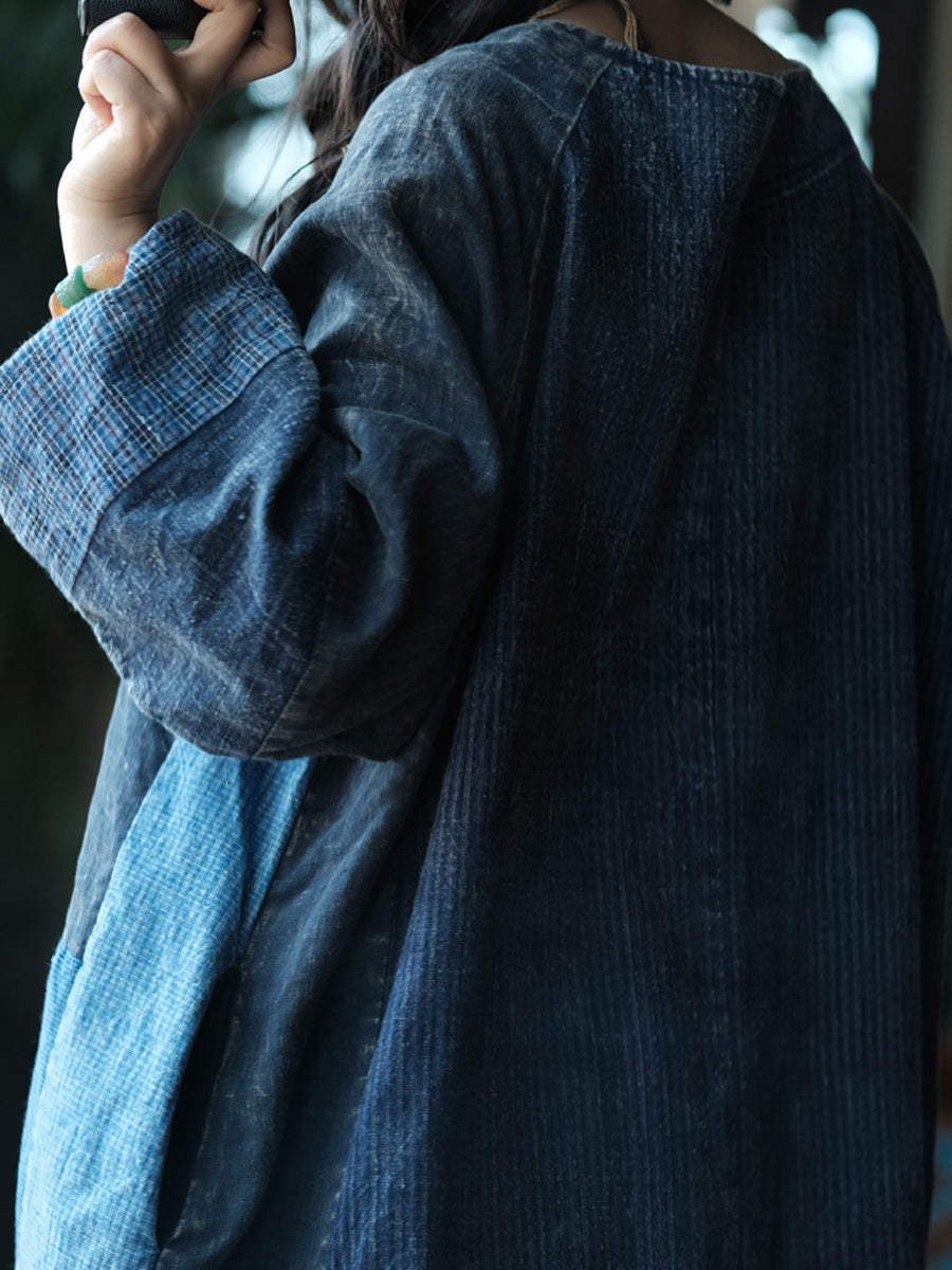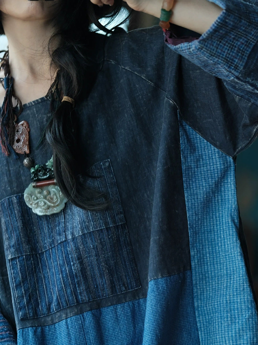 Retro Patchwork O-Neck Dress Women Cotton Autumn