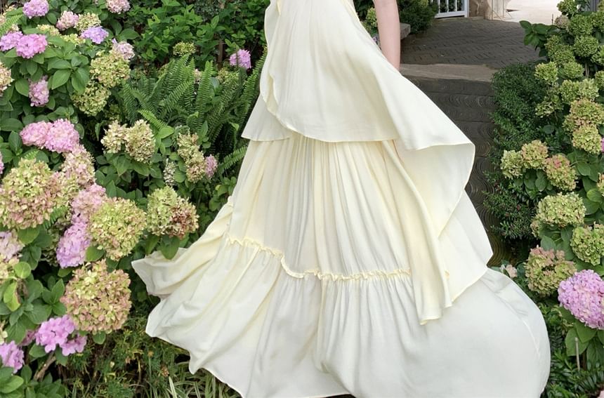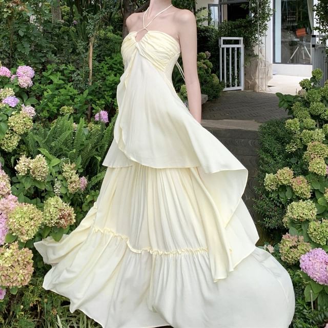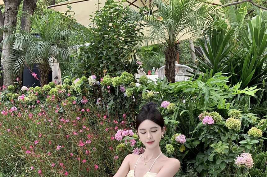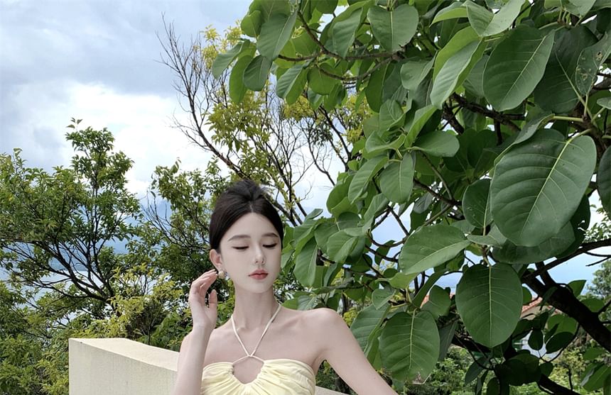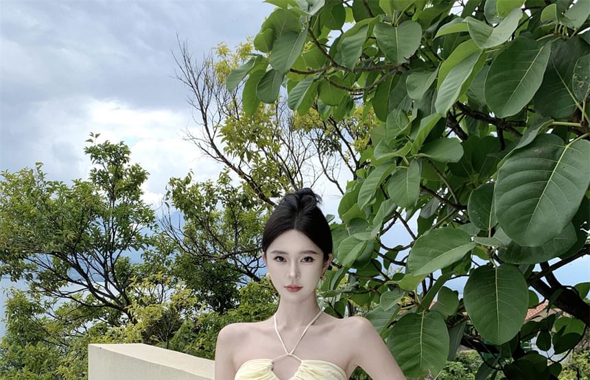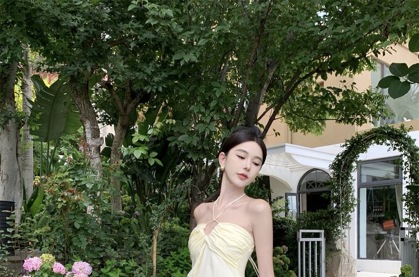 Set: Halter Plain Ruched Slit Top + High Rise Panel Maxi A