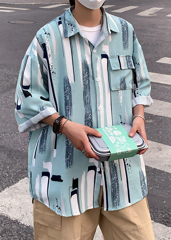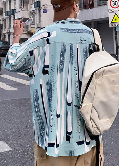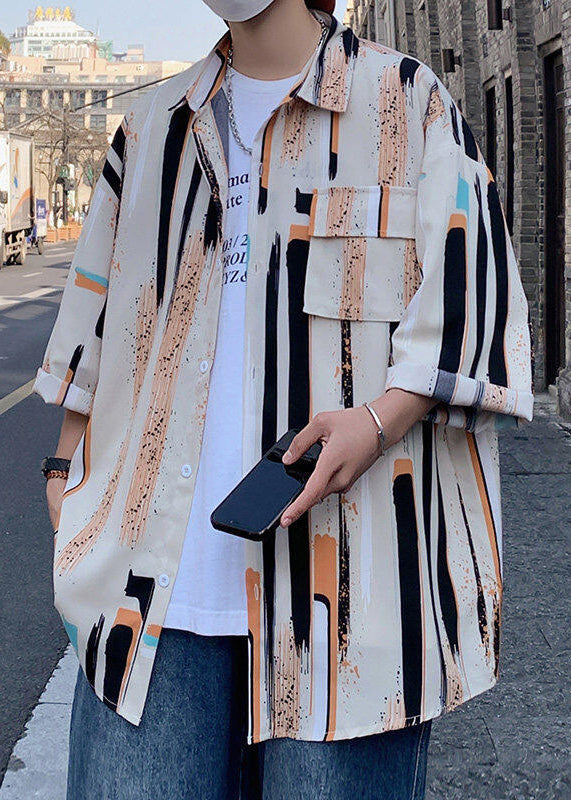 Shirt Silk Apricot Chic Mens Sleeve Ice Bracelet Button Striped