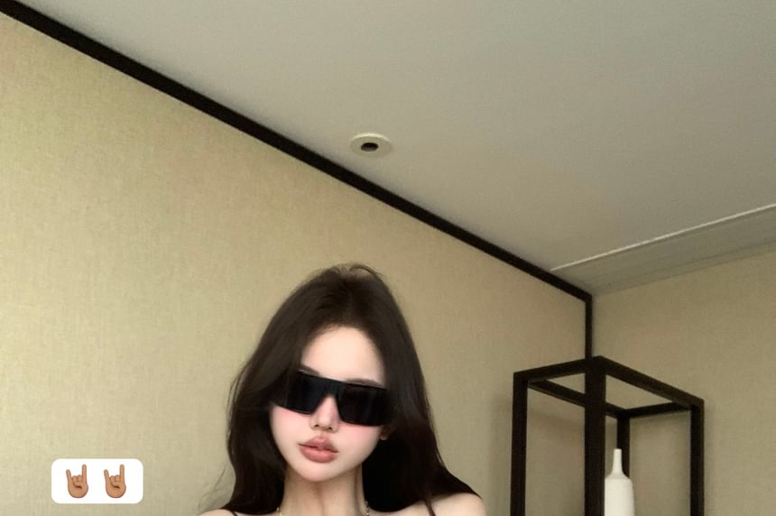 Strap Panel Bodysuit Bow Spaghetti Top V-Neck Accent Lace