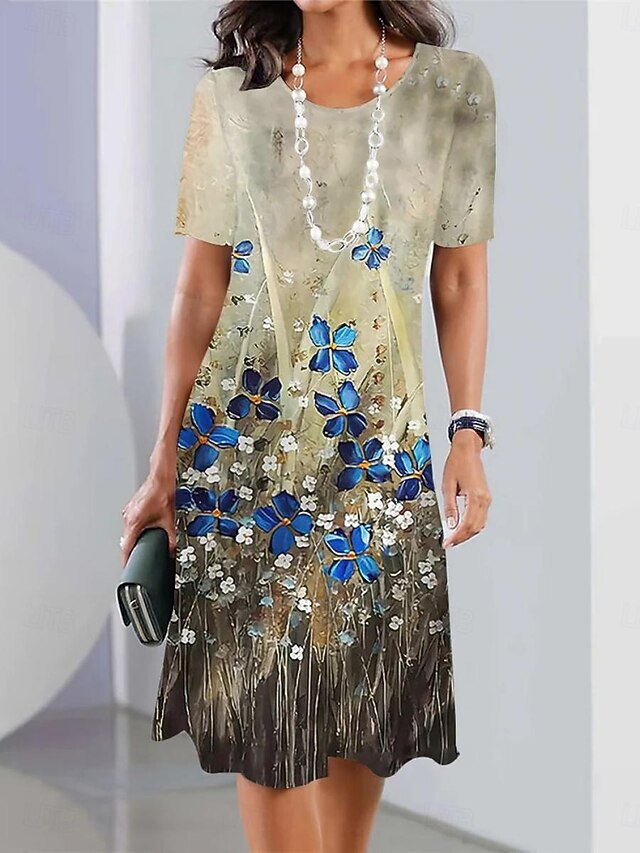 Women's Floral Print Crew Neck Midi Dress Formal Party