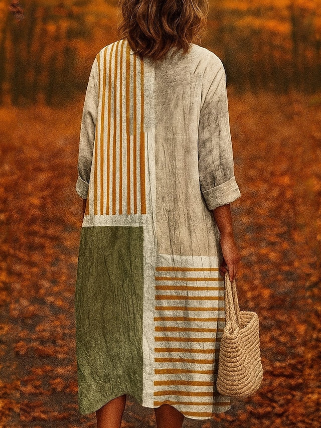 Dresses Type: Sundress, A Line Dress, Fabric: Polyester, Gender: Women's, Design: Print, Occasion: Beach, Going out, Style: Vacation, Casual, Beach, Boho, Fit Type: Loose Fit, Dress Length Type: Midi Dress, Neckline: V Neck, Sleeve Length: Long Sleeve, Elasticity: Inelastic, Look After Me: Machine wash, Pattern: Graphic, Geometric, Season: Spring, Fall, Summer,
