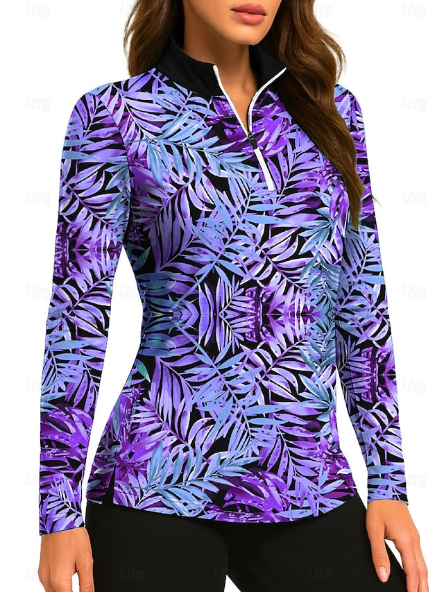 Gender: Women's, Age Group: Adults, Sports Clothing Sub Category: Tops, Tennis Shirt, Golf Polo Shirt, Clothing Type: Top, Shirt, Polo, Activity: Golf, Tennis, Running, Pickleball, Occasion: Outdoor, Activewear, Athletic, Season: Autumn / Fall, Spring, Elasticity: Stretchy, Function: UPF50+, Breathable, Elastic, UV Protection, Fabric: Polyester, Sleeve Length: Long Sleeve, Design: Print, Quarter Zip, Pullover, Neckline: Stand Collar, Zip Collar, Pattern: Tropical, Plants, Floral Botanical, Look After Me: Wet and Dry Cleaning, Washable, Listing Date: 07/31/2025,