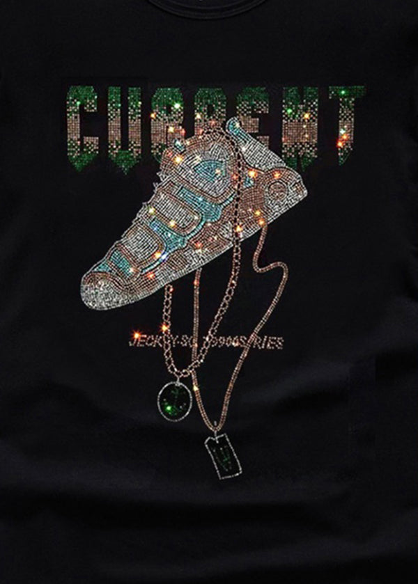 Chic Black O Neck Zircon Cotton T Shirt Men Summer