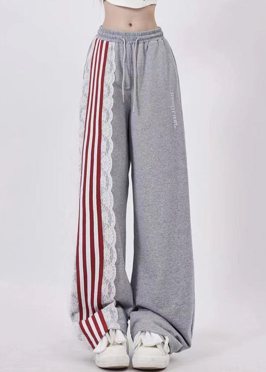 Casual Black Pockets High Waist Lace Up Patchwork Pants Summer