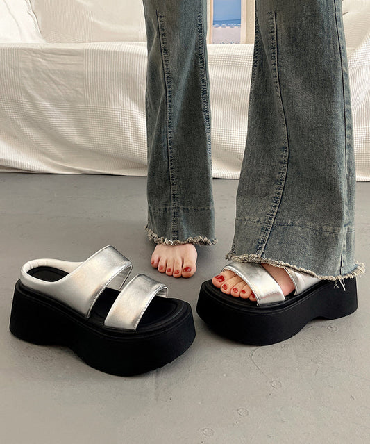 Faux Leather Splicing Silver Fashion Platform Slide Sandals Peep Toe AP1028