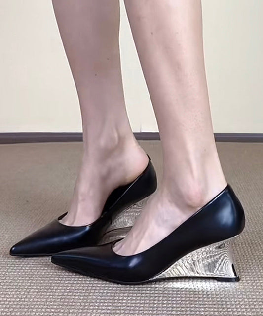 French Silver Faux Leather Wedge Heels Pointed Toe OI013