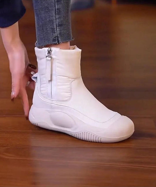 Grey Zippered Chic Splicing Boots Fuzzy Wool Lined TQ066