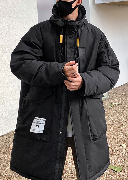 Simple Black Hooded Pockets Solid Coats Men Parkas WinterRM018