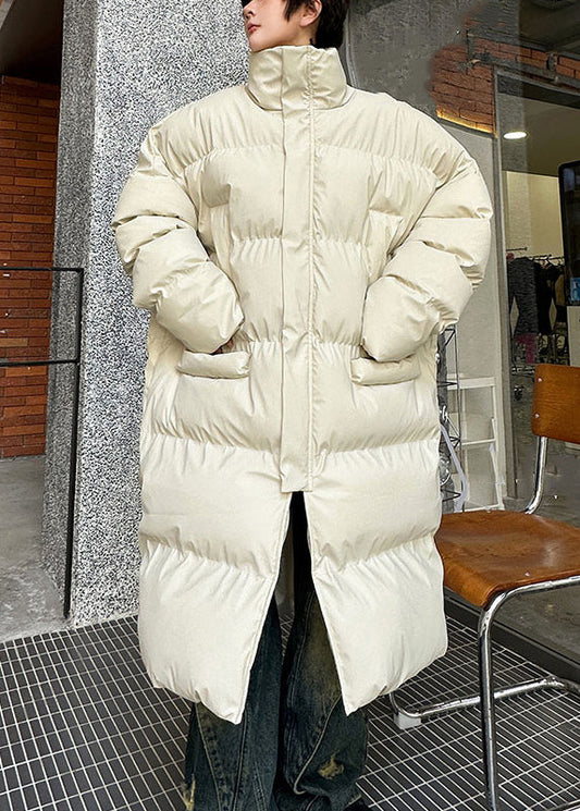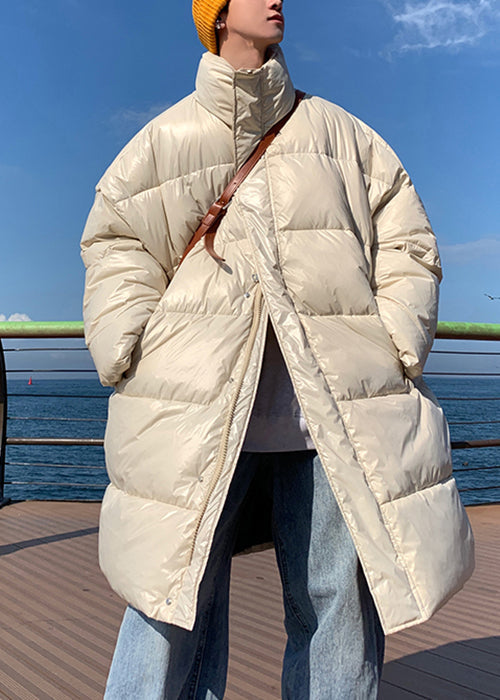 Simple Khaki Zip Up Pockets Duck Down Men Down Long Coats Winter RM008