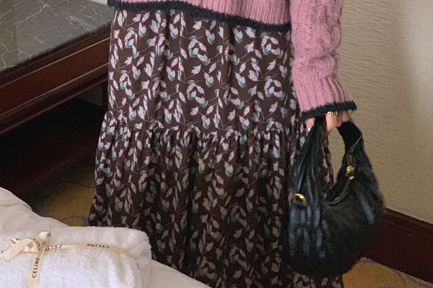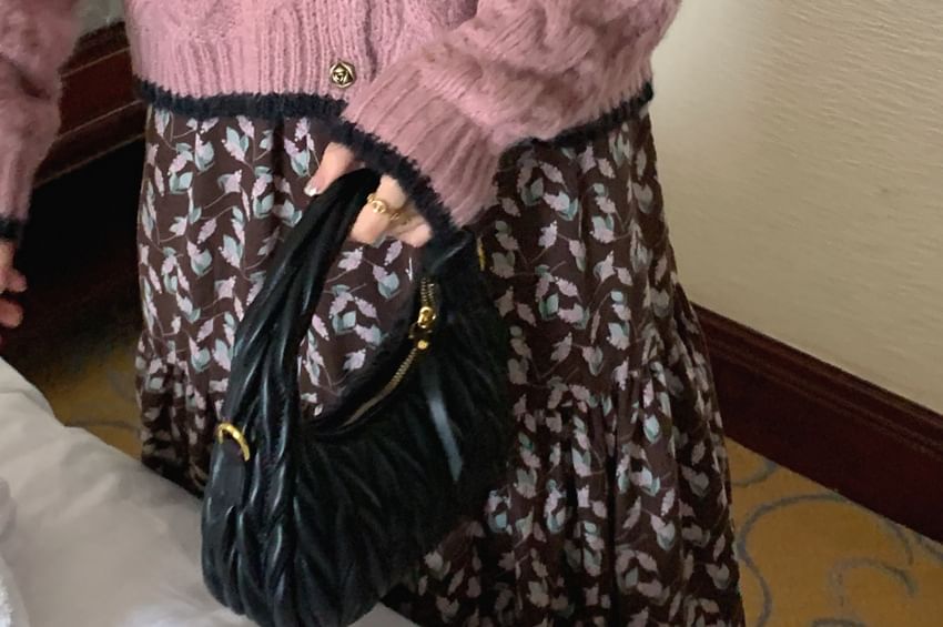 Crewneck Cable Knit Plain Button-Up Cardigan