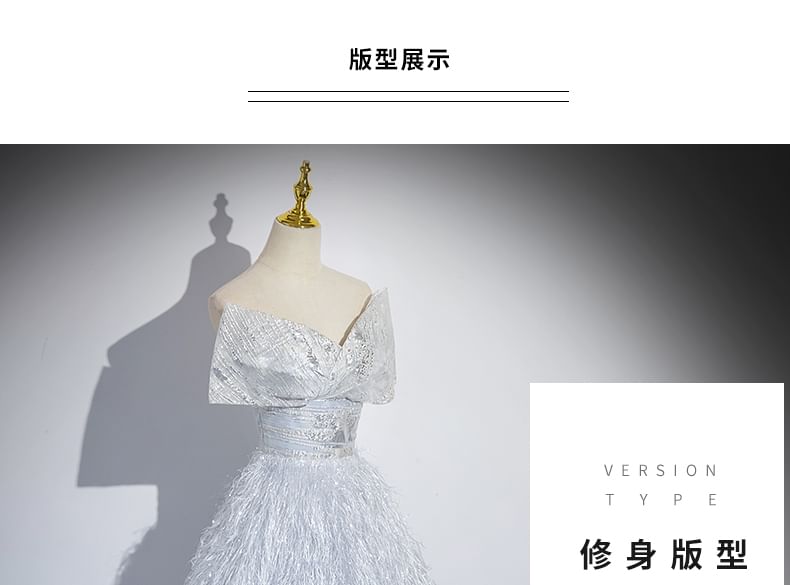 Off-Shoulder Sequin Fringed Trim A-Line Ball Gown
