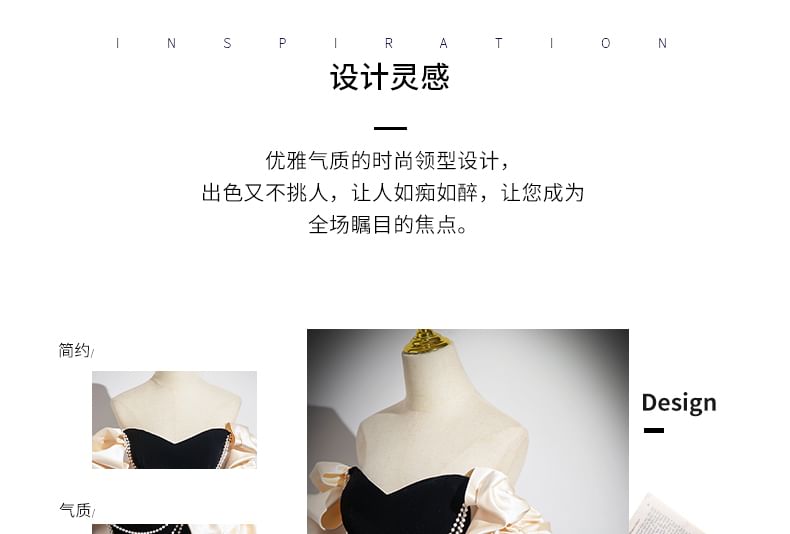 Off-Shoulder Two Tone Beaded A-Line Ball Gown