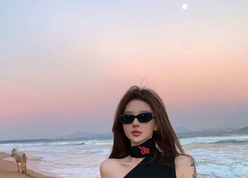 One-Shoulder Slim Halter Print Snake Top Fit Tank