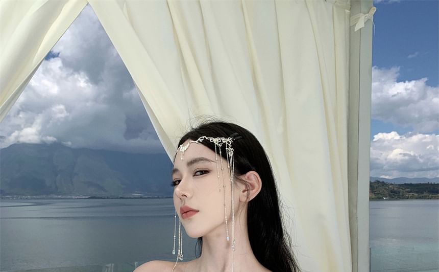 | Color: | Set of 3 - Blouse & Skirt & Faux Pearl Chain - White |