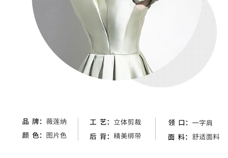 Sleeveless Off Shoulder Plain Pleated Ruched Satin A-Line Evening Gown