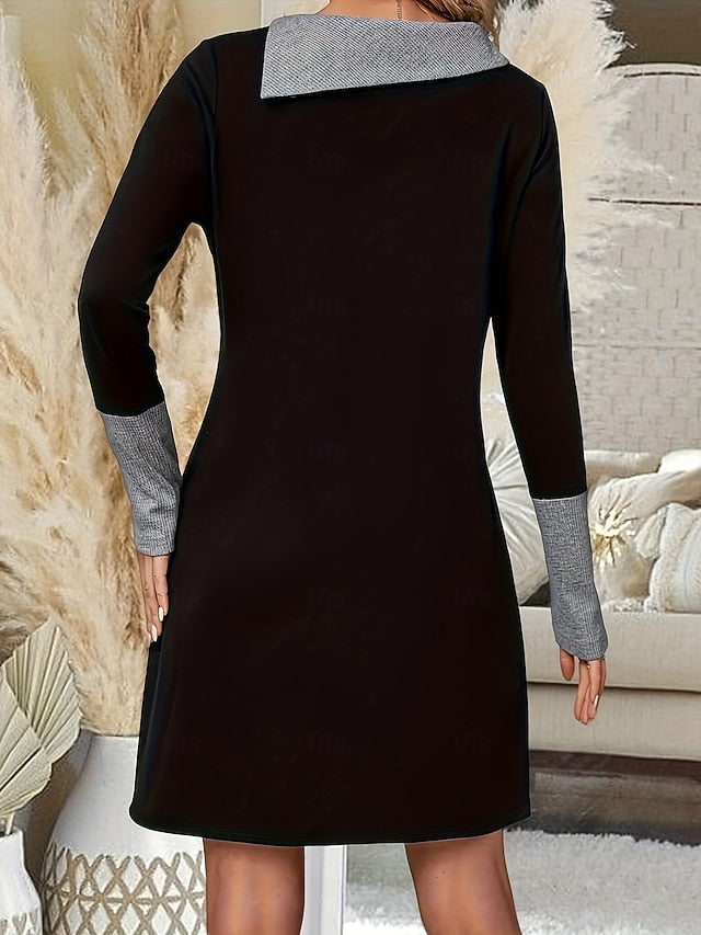 Dresses Type: Print Dress, Fabric: Polyester, Gender: Women's, Design: Buttons, Occasion: Weekend, Going out, Daily, Style: Fashion, Modern, Fit Type: Loose Fit, Dress Length Type: Mini Dress, Neckline: Crew Neck, Sleeve Length: Long Sleeve, Elasticity: Micro-elastic, Look After Me: Hand wash, Machine wash, Pattern: Color Block, Season: Fall, Spring,
