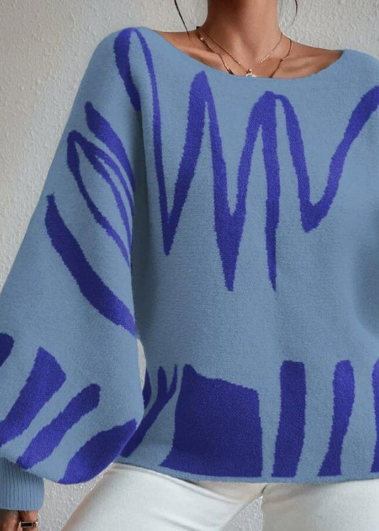 Fashion Blue Slash Neck Knit Sweaters Lantern Sleeve QY017